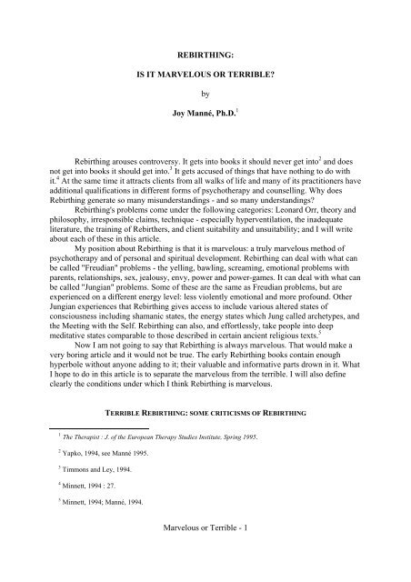 Rebirthing Is It Marvelous Or Terrible By Joy International